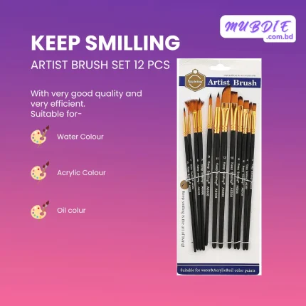 Keep Smiling Artist Brush 12 pcs Set – For Water, Acrylic & Oil Colour Paints