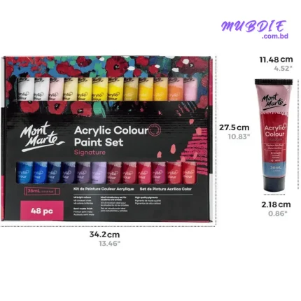 Mont Marte Acrylic Paint Set 48 Colors 36ml, Suitable for Canvas, Wood, MDF, Leather, Air-Dried Clay, Plaster, Cardboard, Paper and Crafts, Multicolour
