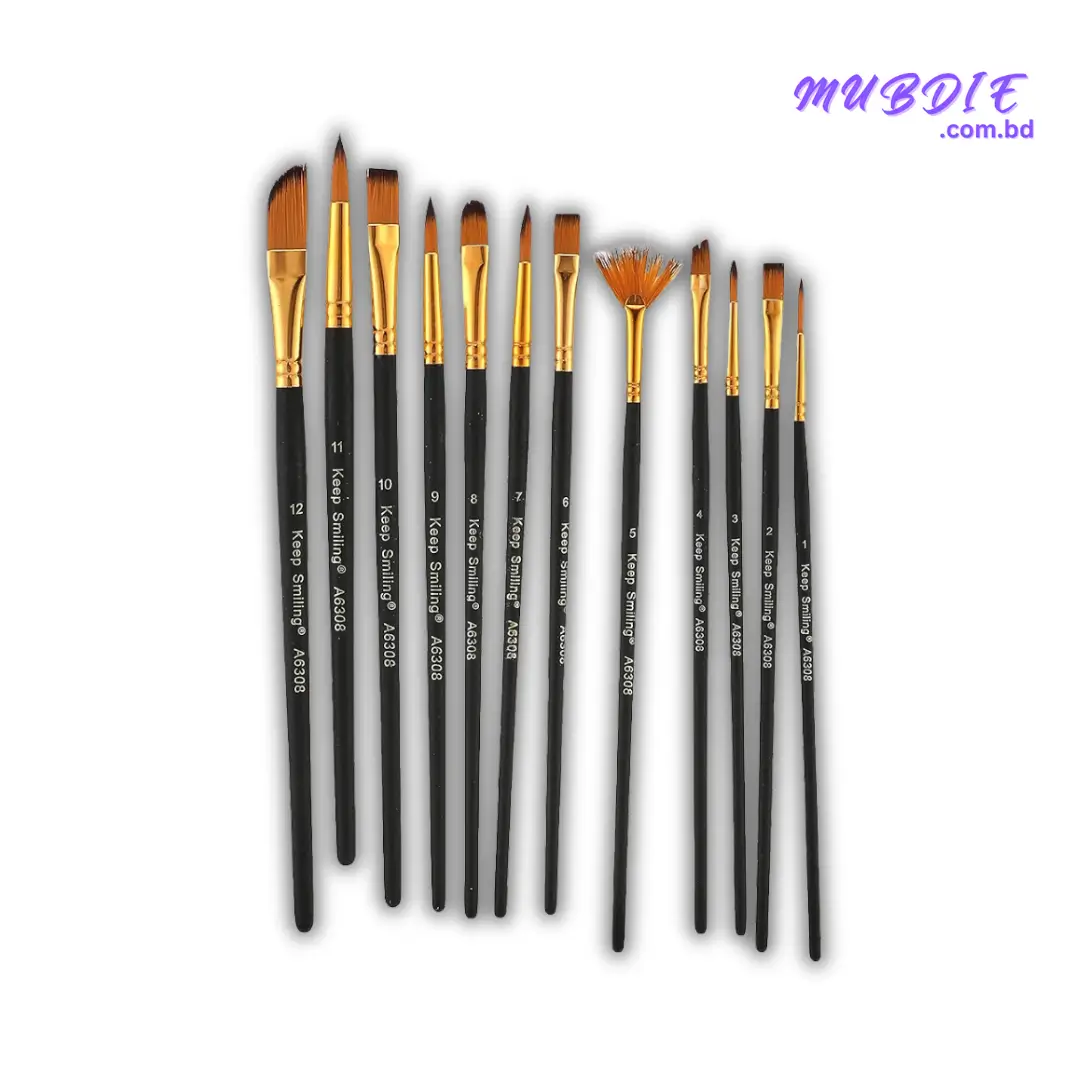 Keep Smiling Artist Brush 12 pcs Set – For Water, Acrylic & Oil Colour Paints
