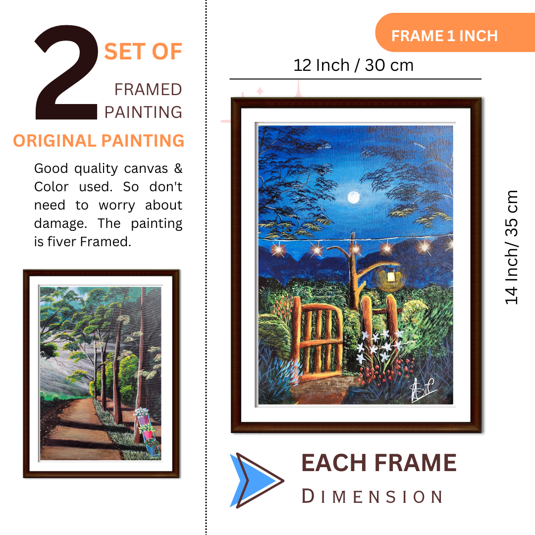 This set of 2 framed landscape acrylic paintings by Asif Tonmoy captures nature’s beauty. Perfect for bedroom or reading room, creating a serene atmosphere.