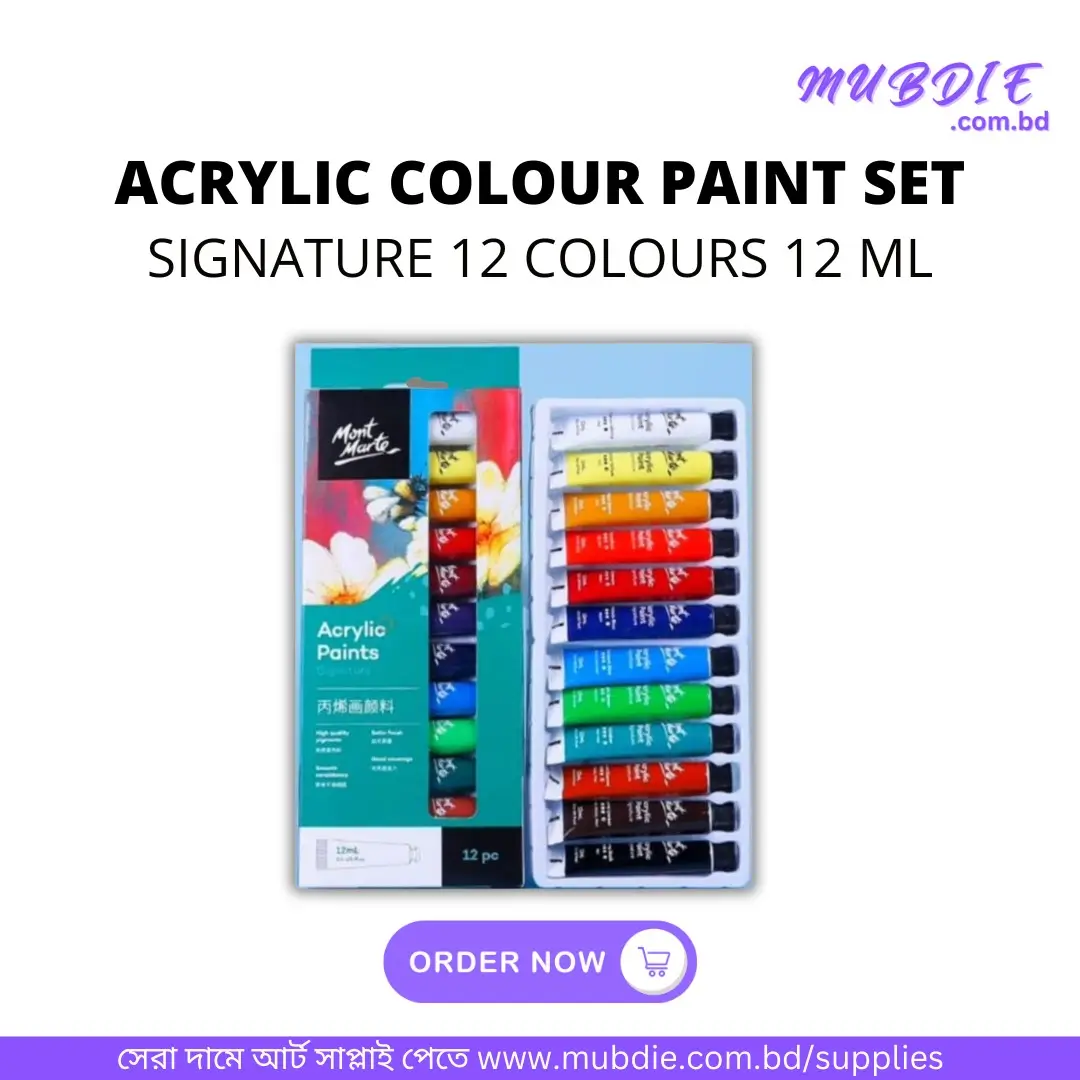 Mont Marte Acrylic Colour Paint Set | Signature 12 Colours | 12ml Tubes | Professional