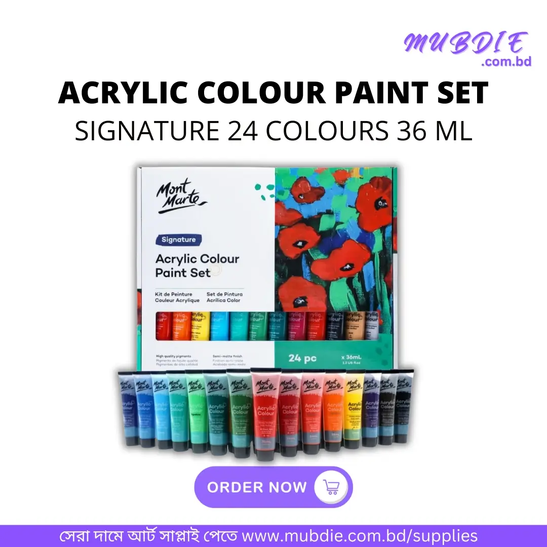 Mont Marte Acrylic Colour Paint Set | Signature 24 Colours | 36ml Tubes | Professional Quality